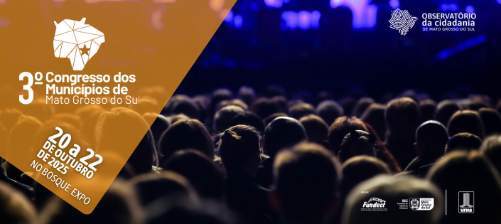 O Observatório da Cidadania de Mato Grosso do Sul participa do 3º Congresso dos Municípios de MS, nos dias 20, 21 e 22 de outubro de 2025, no Bosque Expo, em Campo Grande-MS. O evento tem como tema “Eficiência na Gestão Pública: Saúde, Educação e Assistência Social para o Desenvolvimento dos Municípios de MS” e reunirá gestores, especialistas e lideranças políticas de todo o estado.