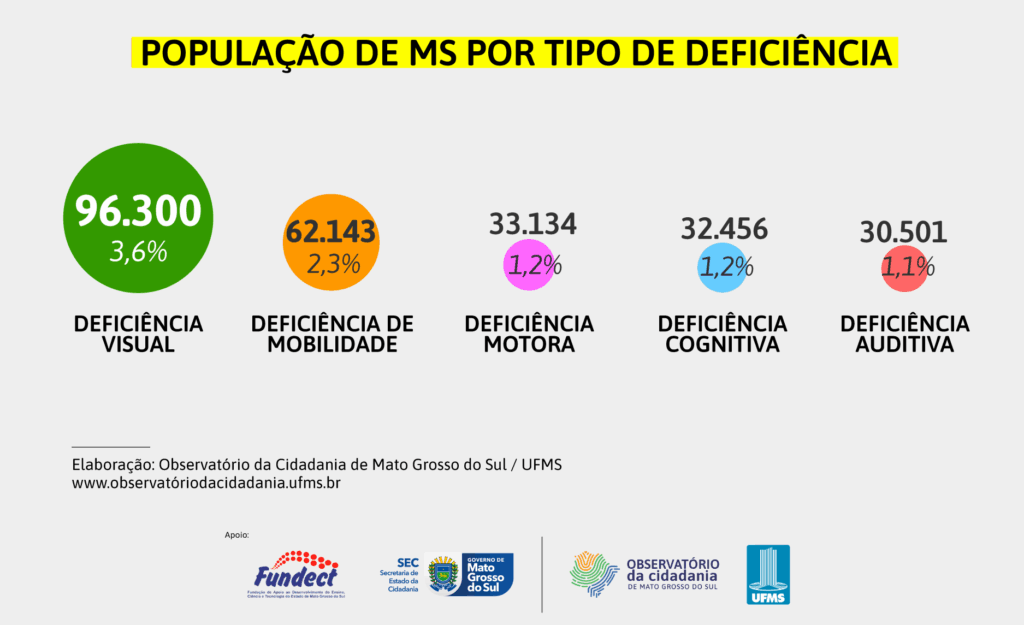 Desde o dia 15 de setembro de 2025, o site do Observatório da Cidadania de Mato Grosso do Sul (OCMS) está com um novo painel sobre as Pessoas com Deficiência em Mato Grosso do Sul e nos 79 municípios. O painel está organizado em seções temáticas — população, educação, cor ou raça, domicílio e políticas públicas — além de incluir um segmento específico sobre a população indígena. As tabelas, mapas e gráficos foram organizados e elaborados a partir do Censo do Instituto Brasileiro de Geografia e Estatística (IBGE) de 2022.